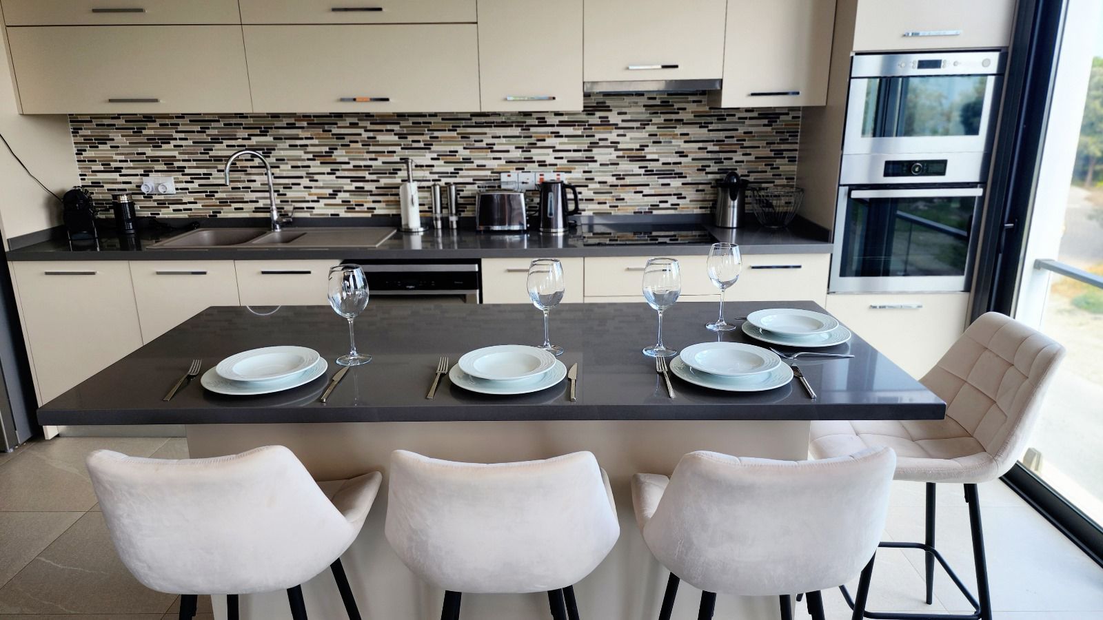 The apartment has 2 bedrooms, 1 storage room, and a total living area of 130 m² (90 m² indoor + 40 m² terrace), offering stunning views of nature and the sea.
