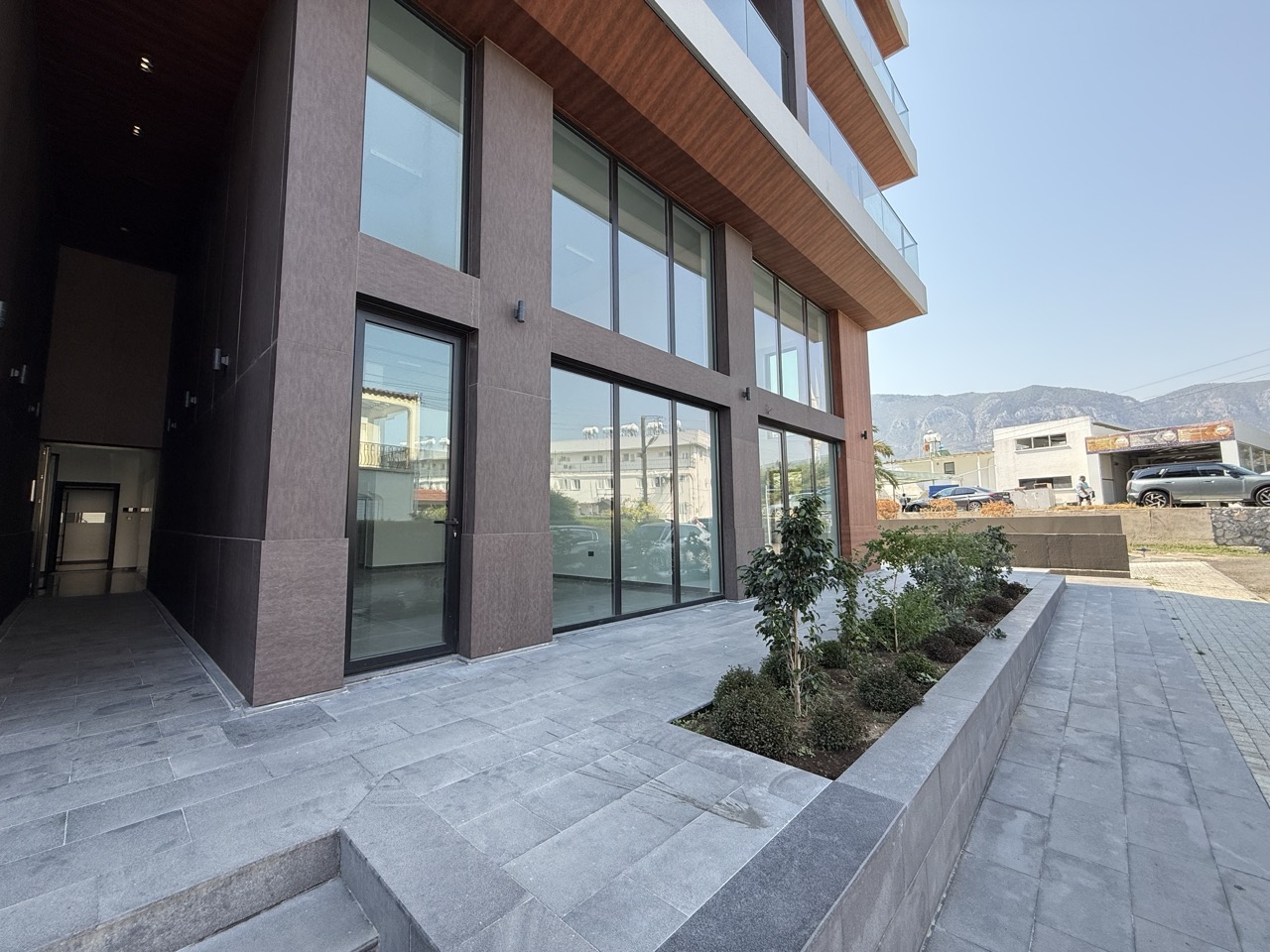 Girne Merkez'de Bellapais yolunda yeni tamamlanmış binada zemin katta asma katlı satılık dükkan.